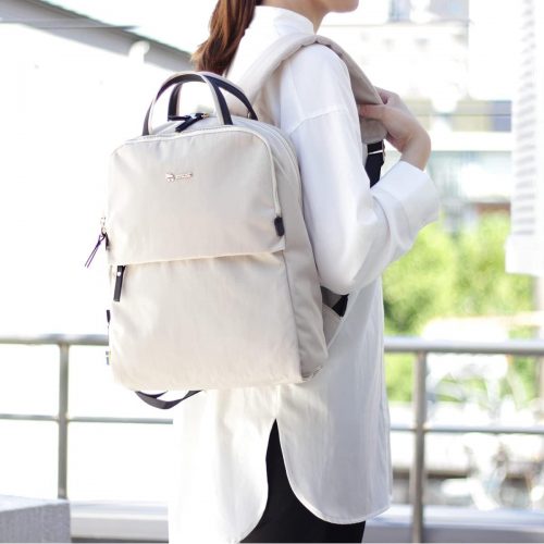 女子大学生向けのリュックで、軽量かつ耐久性に優れているのは、ナイロン素材で作られています。ナイロン特有の光沢感があり、カジュアルすぎず、大人っぽい雰囲気が魅力です。スタイリッシュなデザインが好きな方や、フェミニンコーデにもぴったりです。