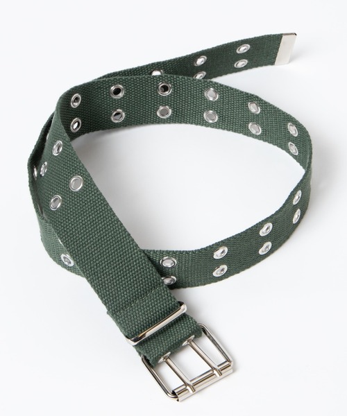 ハトメが2列に配置された、粗野なデザインが格好いいレディースベルト。日常のパンツに合わせるだけで、印象を与えることができるのが魅力です。全身がモノトーンで統一されたシンプルなコーディネートや、デニムパンツに合わせたカジュアルなコーディネートにもぴったりです。