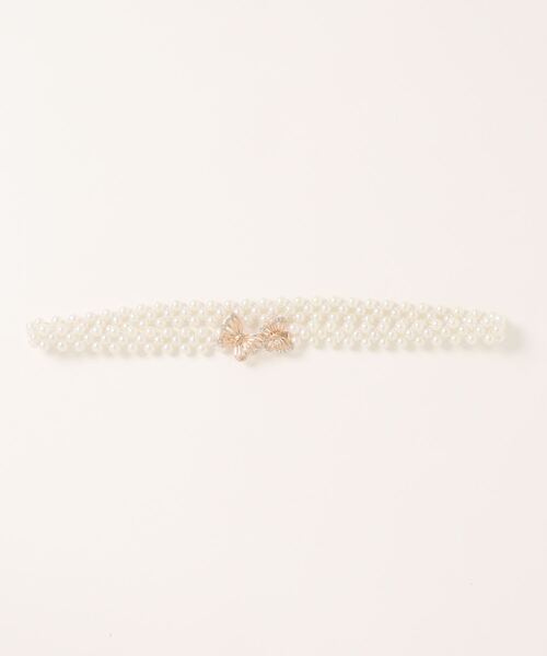 パールをたくさん使った、上品なデザインのレディースベルト。ゴムで作られていて、フィット感が高く、ゆったりとしたワンピースやチュニックのウエストマークとしても活躍します。引っ掛けるだけで留められるので、使いやすいのも魅力です。