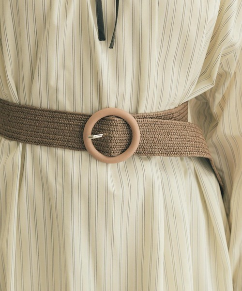 ワンピースやチュニックなどに映える、太めのレディースベルト。夏らしい素材を使った、季節感溢れるアイテムです。ベルト穴がないタイプで、トップスのサイズ感や体型に合わせて調節可能です。ベルトの窮屈感が苦手な方にもおすすめです。