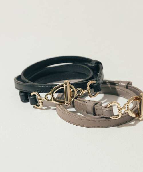 カラーは、ベーシックなブラウンや黒に加えて、軽やかなオフホワイトやペールグリーンなども展開しております。デニムパンツのアクセントとしてはもちろん、ワンピースのウエストマークにも最適です。