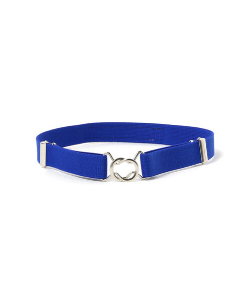 両端に取り付けられた金具を組み合わせて留める、着脱が容易なレディースベルト。伸縮性の高いゴムベルトにワッペンを配置した、象徴的なデザインも特徴です。パンツや他のボトムスはもちろん、カジュアルなシャツワンピースにも適しています。