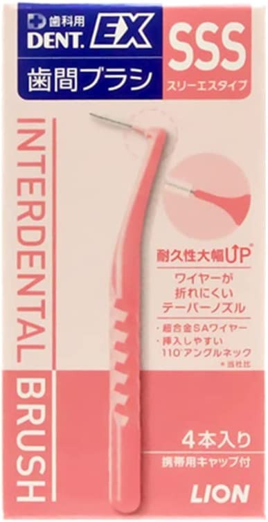 SSSSサイズで、他の歯間ブラシでは挿入しにくい歯間にも対応可能なモデルです。ブラシ素材はワイヤータイプで、しっかりと歯垢を除去したい方に適しています。