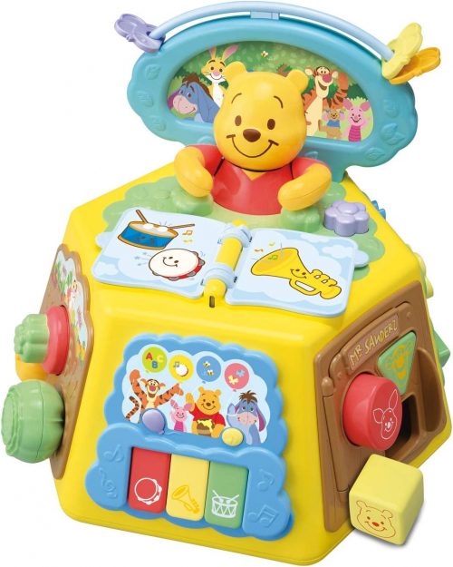 「くまのプーさん」と一緒に楽しみながら学べる知育玩具です。指先を動かすだけでなく、音が鳴ったり、プーさんとおしゃべりしたり23種類の遊びを楽しめます。絵本と遊ぶ面が連動しているのもポイントです。