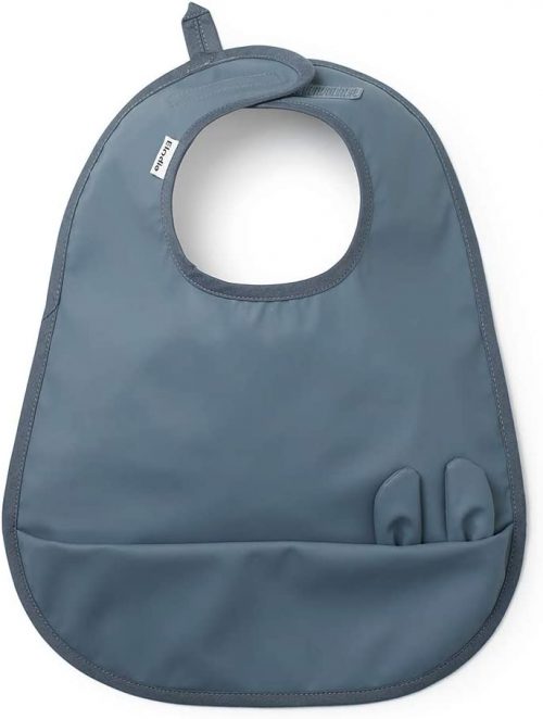 サイズ感はやや大きめで肩や胸までカバーできるため、服が汚れにくいのがポイント。フロントポケットも付いており、食べこぼしをしっかりキャッチするだけでなくカップ1杯分の液体も入ります。