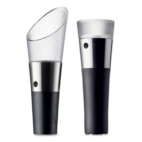 お酒好きのなかでも普段からワインを楽しむ方に適した、ワイングッズのプレゼントです。瓶の注ぎ口に取り付けることで、空気を取り込んで風味をまろやかにするポアラーと、バキュームタイプのボトルストッパーがセットで入っています。