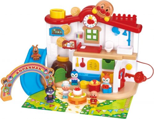パーティー遊びができる人形・小物がセットになったアンパンマンドールのおもちゃです。たくさんの仕掛けが付いているのが特徴です。トイレのレバー・チャイムボタン・かまどのスイッチは音が鳴ります。時計の針・とびらのカギ・床のでっぱりの形合わせなど、日常生活に密着した仕掛けがたくさんあります。対象年齢は2歳以上です。