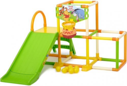 2歳の女の子が室内で遊べるジャングルジムで、すべり台がついています。場所をとらずに遊べるのが特徴です。パイプ部分は、丈夫な作りで接合部が隠れています。ジムの一番上にはボール遊びができるハニーポットがついており、直径55mmのボールが8個付いています。
