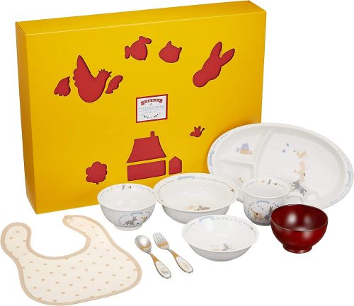 国内製の陶器メーカー「NARUMI」の食器がセットになった2歳の女の子への贈り物です。破損しにくく取り扱いしやすいのが特徴です。28cmプレート・240ccボウル・210ccマグカップ・240ccごはん茶碗・240ccおやつ皿・220cc汁碗・カトラリーセット・スタイのセットです。