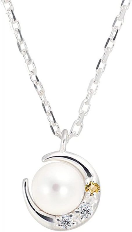 天使の卵の記念日、誕生石を選べる、三日月のパール、バースデーシルバーペンダント