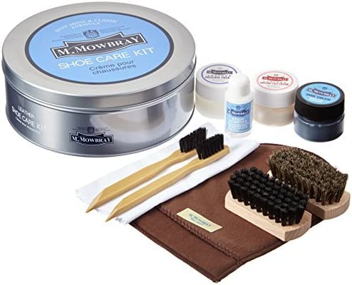 扱いやすく手軽に革本来のツヤを引き出せる、シューケアアイテムのセットです。セットには専用のスチール缶に、靴用汚れ落とし・3種類のクリーム・ブラシ4本・クロス2種が含まれています。合計10点のスムースレザー用のケアアイテムが入っています。