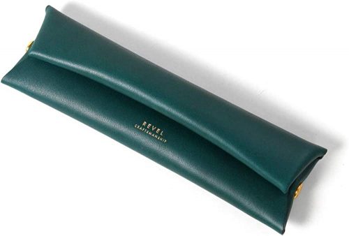 40代男性向けのオフィス用の使いやすい革製のペンケースです。丸い形状でスリムであり、ふたを開けると平らに広がります。中身を広く見渡せ、トレーのように使用できる特徴があります。また、標準的なサイズのペンを4~5本収納できます。