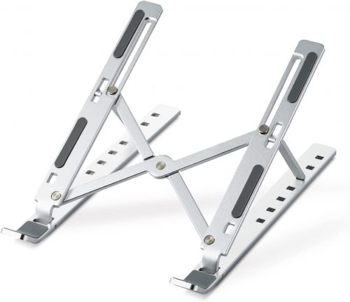 テレワークが増えている40代男性におすすめのポータブルノートパソコンスタンド。7段階の角度調節で、適した姿勢を保てるのが特徴です。17.3インチ以下のノートパソコン、12.9インチ以下のタブレットに対応。熱伝導性の高いアルミ合金を使用し、ノートパソコンの底をふさがない構造のため、放熱効果があるのもポイントです。
