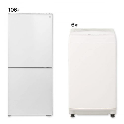 洗濯機は6キログラムで冷蔵庫は106リットルと、一人暮らしでも利用しやすいサイズが重要です。洗濯機ではおおよそ4日分の洗濯物を一度に洗濯できます。一方、冷蔵庫は2ドア式で、冷凍庫が引き出し式で取り出しやすいのが魅力です。