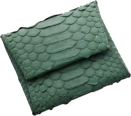 パイソンを使用した素材を使った、薄型のコインケースです。大きく開くので、小銭を取り出しやすいのが特徴です。また、片手に収まるコンパクトなサイズ感も嬉しいポイントです。