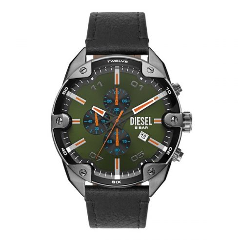 ディーゼルの腕時計。シックなデザインで、ステンレススチールと牛革を使用しています。ストラップは20cmの長さで、ケースのサイズは4.9cmです。