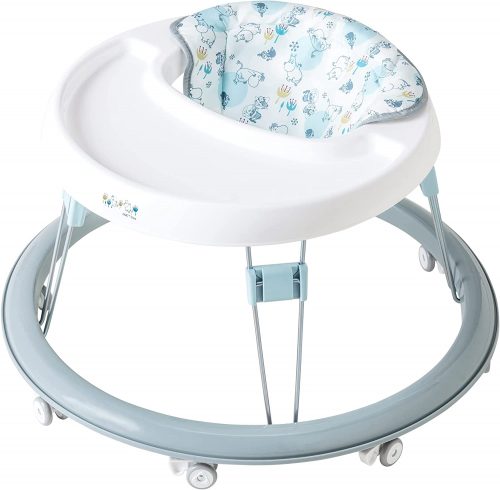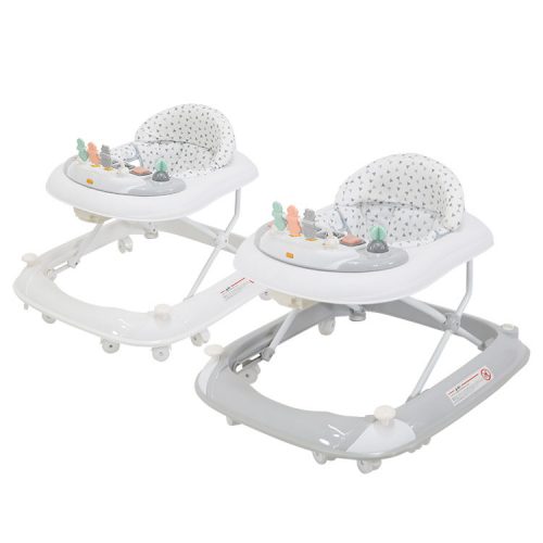 グレーとブルーの落ち着いた色合いで、ムーミンの可愛らしいデザインが施された歩行器です。柔らかいクッションと頑丈なベルトで、赤ちゃんの体を優しくサポートします。おしゃれで安全性にも優れたおすすめの製品です。