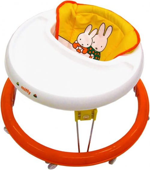 赤ちゃんに大人気のミッフィーデザインが可愛い歩行器。シートだけではなく、フレーム部分にもさりげなくイラストが描かれています。