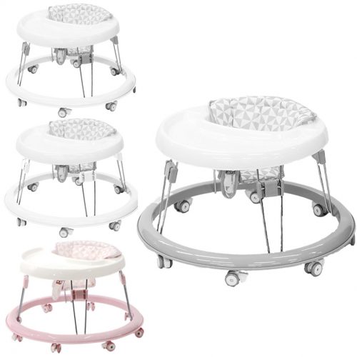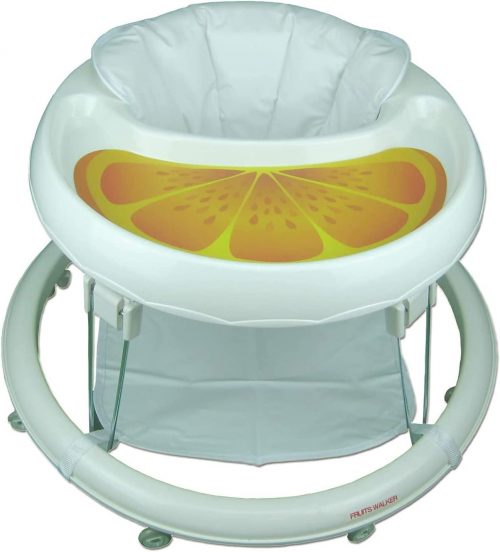 フルーツのデザインがスタイリッシュな歩行器。プレートは取り外して洗えるので、食事時の汚れも簡単にお手入れできます。収納時には折り畳んでコンパクトに収納できる仕様です。