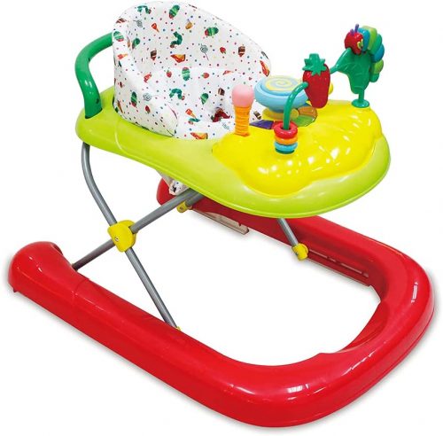 はらぺこあおむしのカラフルなデザインがかわいい歩行器。メロディ機能や指先遊びを楽しめるトイを備え、遊具としても活躍します。つかまり立ちができるようになると、手押し車としても使用可能。赤ちゃんの成長に合わせて長く使えるのでおすすめです。