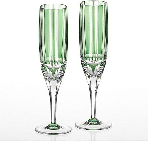 新緑になじむ青竹をイメージした、透明感のある翠(みどり)が映えるシャンパングラス。シンプルなカットながら、舞い上がるシャンパンの泡を美しく引き立てます。