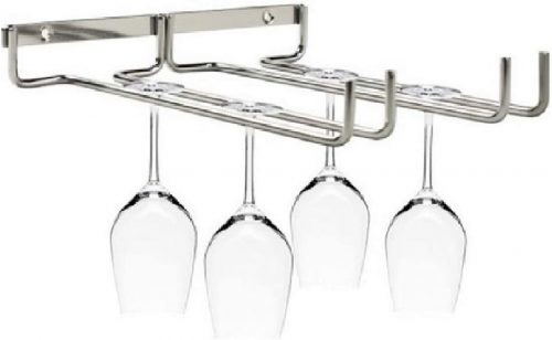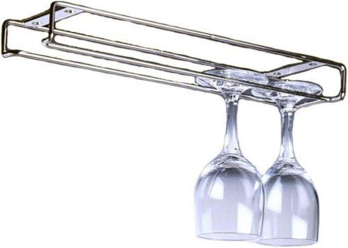 1レーンのワイングラスホルダーです。吊り戸棚やキャビネット下にねじ止めで設置できます。長さは27cmで、2~3個のグラスを収納できます。