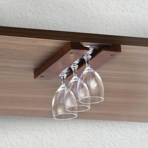 吊り戸棚やキャビネット下の天板にねじでしっかり固定できます。1レーンタイプでスペースを節約し、おしゃれに少数のワイングラスを収納できます。脚幅が約8.2cm以下のグラスにも対応しています。