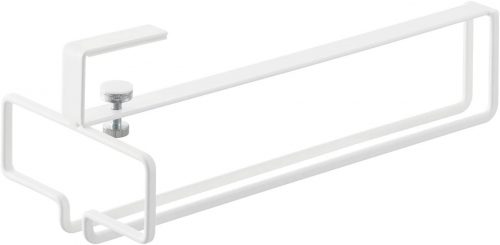 吊り戸棚やキャビネット下の天板に直接取り付けるねじ止めタイプです。素材は丈夫なクロームです。両端にねじ穴があり、3か所でしっかりと固定できます。形状はシンプルで、手入れが簡単なのも利点です。