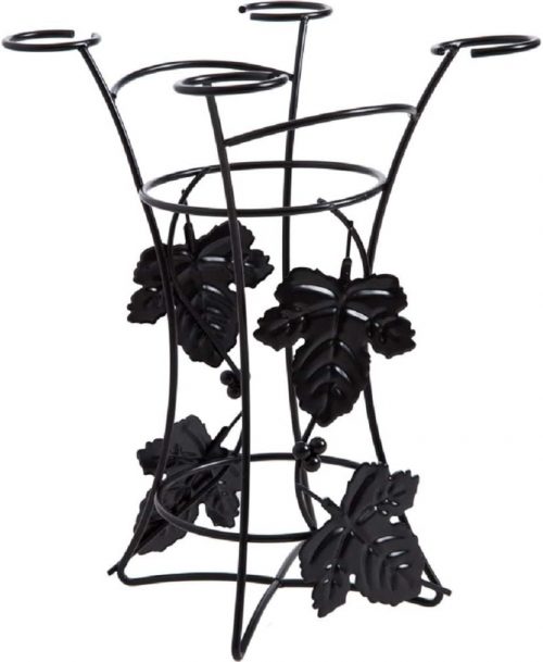 ボトルとグラスを一緒にディスプレイできるおしゃれなワイングラスホルダー。ワイヤーフレームの植物デザインで、中央部にリーフモチーフが飾られているのがポイントです。
