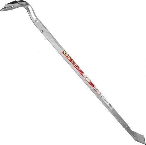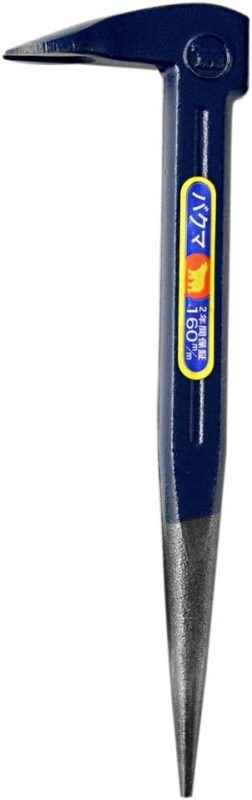 軽量で丈夫なバールで、完全焼入パイプを使用しています。先端の形状はL字部分で釘を抜くことができ、反対側の端はスクレイパーのようになっています。釘抜きは角度がついており、壁際などの抜きにくい釘も簡単に抜くことができます。また、スクレイパー部分は薄く作られているため、狭い隙間にも簡単に入れることができます。