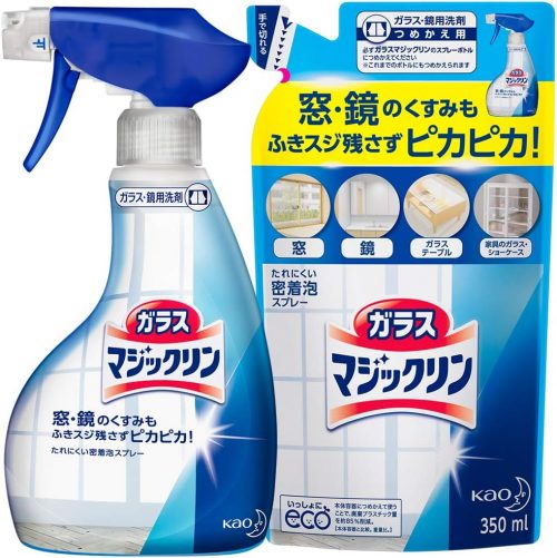 泡が窓ガラスにしっかりと密着し、花粉や手垢などの汚れをすっきりと落とせるガラスクリーナーであります。拭き取った後に透明な保護膜を作ることで、汚れや水滴が付きにくくなると謳われております。きれいな状態の窓をキープしやすいのが魅力でございます。