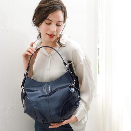 軽快さを追求した、通勤に最適なバッグです。使用している独自の素材は、馬革にエナメル処理を施したものです。しなやかな質感と光沢感が魅力です。