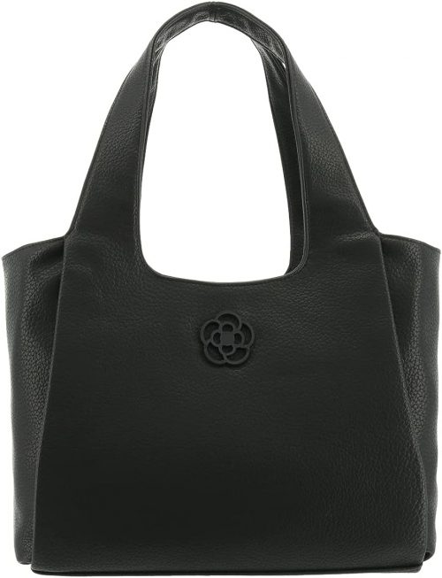 ポケットは大きく後ろに配置されており、カメリアマークの型押しが施されています。両面とも女性らしい表情に仕上げられています。カラーはブラックとトープの2色展開で、どちらも40代の方にふさわしい上品な色合いです。