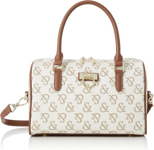 「&」モチーフのパターン生地が目を引くバッグ。ベーシックな色合いのため、様々なファッションやシーンに合わせて使用できます。リングをモチーフにした金具が、デザインのハイライトとなっています。
