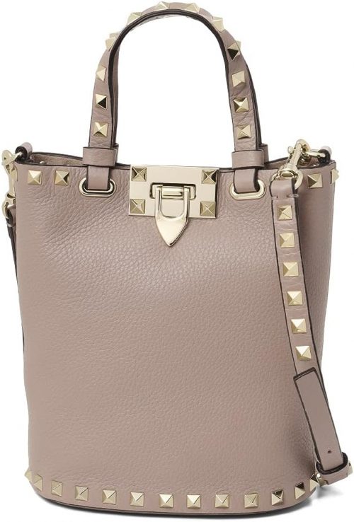 ヴァレンティノ ガラヴァーニの人気シリーズ「ロックスタッズ」のバッグ。ゴールドのスタッズが力強く光り輝き、スタイリングにクールな個性を加えます。