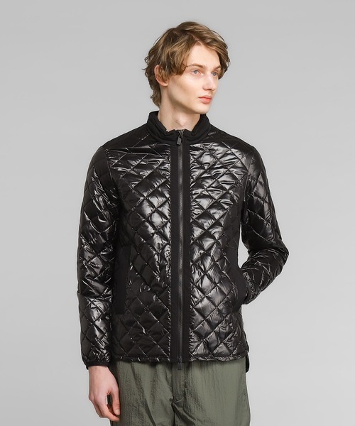 環境に配慮したリサイクルダウンが中わたに使用されているメンズ向けのライトダウンジャケットです。キルトデザインを採用することで、ダウンの偏りを減らしています。わずかな雨や雪に対応できるのが特徴です。