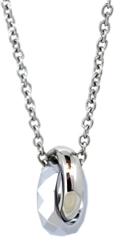 2つの小さなリングモチーフを重ねたシルバーネックレスです。プレーンリングとカッティングが施されたリングを交差させ、シンプルすぎずにミニサイズとなっています。さらに、複数のカラーが展開されているのも魅力的です。