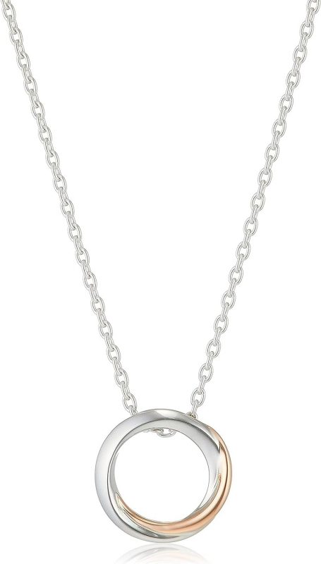 コントラストカラーのリングモチーフがデザインされたシルバーネックレス。リングは変色しにくいエターナルシルバーカラーをメインに、10金のピンクゴールドでアクセントを加えています。