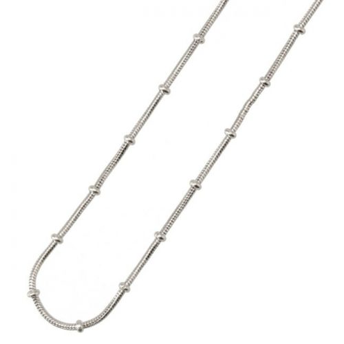 スネークチェーンに等間隔でリングパーツが配置されたシルバーネックレス。シンプルだけど個性的なデザインで、さまざまなメンズスタイルにマッチするアイテムです。