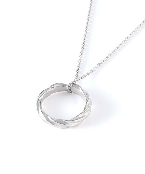 ネックレスにはツイストされたリングモチーフがあります。シンプルながらも独特なデザインで、男性のコーディネートにおいてちょっとしたアクセントとなります。カジュアルなスタイルからストリートファッション、きれいめのスタイルまで、どんなスタイルにも合わせやすいのも魅力です。