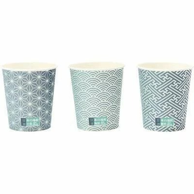日本伝統の模様とされる「地紋(じもん)」を使った和風テイストの紙コップ。北欧の柄にも似たモダンなデザインが特徴です。