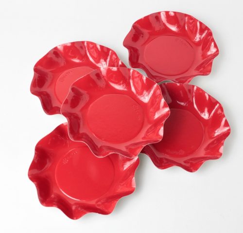 イタリアのメーカーが手がける、目を引く明るい色合いの鮮やかな紙皿です。フチ部分が波打つようにデザインされており、それが魅力の一つとなっています。深さは2.5cmで、様々な料理の盛り付けに適しています。