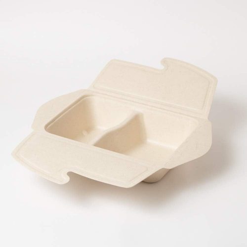 蓋を閉じたときのサイズは、縦16.5×横25.0×高さ6.5cmです。耐水性と耐油性があり、様々な料理に使用可能な紙皿としておすすめです。植物由来の素材ならではの通気性があり、結露しにくいのがポイントです。電子レンジが使用可能であり、紙皿特有の風合いを活かしたデザインです。
