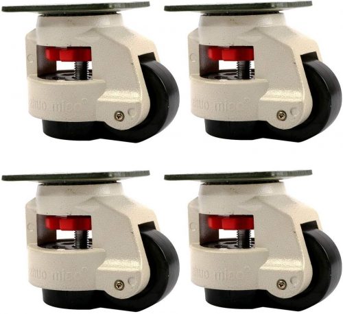 耐荷重が約1000kgのアジャスター付きキャスターです。キャスターのホイールは高級なナイロンとアルミニウム合金で作られているため、耐久性があります。