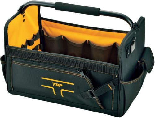 多数のポケットを持つスタンドバッグタイプのツールバッグです。ペンチやカッターナイフの他にも、コンベックスホルダーやノコギリ専用ポケットが付いています。中身の出し入れがしやすいフルオープンタイプの製品をお探しの方にもおすすめです。