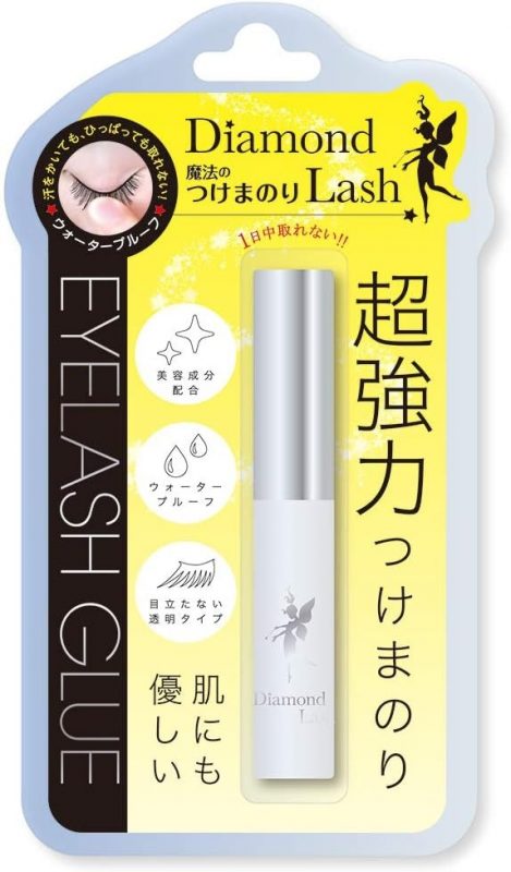 ウォータープルーフタイプのため、汗や水に濡れても難に剥がれにくいのが特徴です。また、乳白色から透明に変わるタイプで、グルーが乾いた後には自然なまつげに仕上がります。