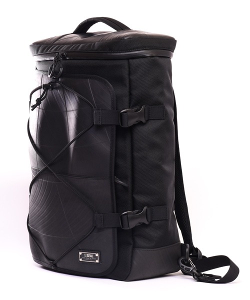 雨や水に強いターポリン生地を使用し、縫い目のないシームレス加工で仕上げた防水バッグです。さらに、水が浸入しにくいロールトップ式の開口部を備えており、高い防水性を提供しています。
