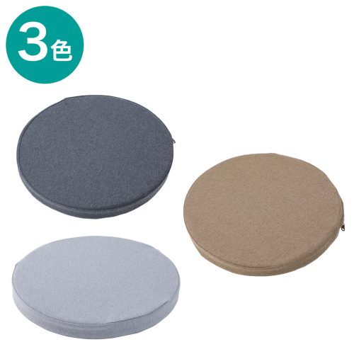 コンパクトな座面タイプの椅子用クッションです。本体サイズは、34cm×34cm×3.5cmです。ほどよい厚さがあるので、デスクチェアにもおすすめです。丸型のコンパクトなデザインを採用しています。