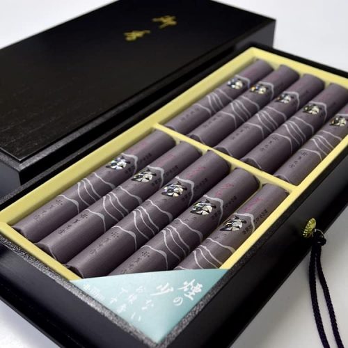 優雅な桜の香りが高級感たっぷりの線香。天然の白檀がブレンドされたプレミアムな線香です。線香が入っている塗箱も美しく上品で、贈り物やお礼の品としても喜ばれます。