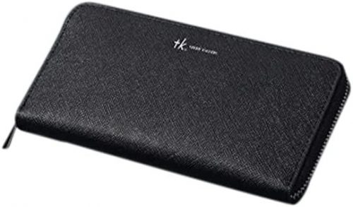 合成皮革製のボディに型押し加工を施して、高級感のあるデザインに仕上げた安い長財布です。シンプルなブラックとネイビーに加え、アルファベットのTKをもとにしたパターン柄をあしらったブラックとベージュの4カラーをラインナップしています。
